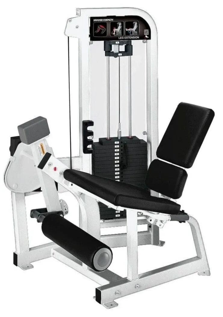 The Hammer Strength Select Leg Extension is a fundamental part of the strength training progression. All adjustments are accessible from the seated position, and the adjustable start position provides five different starting points.