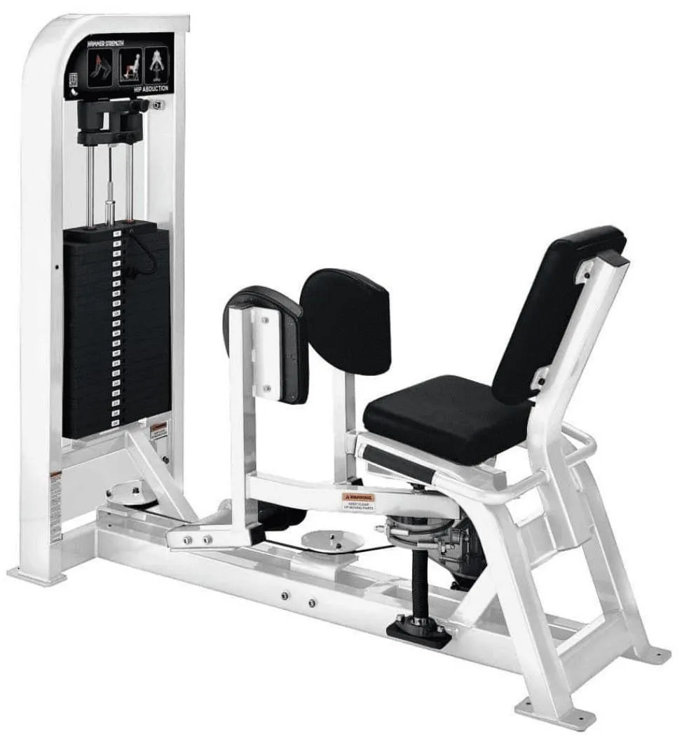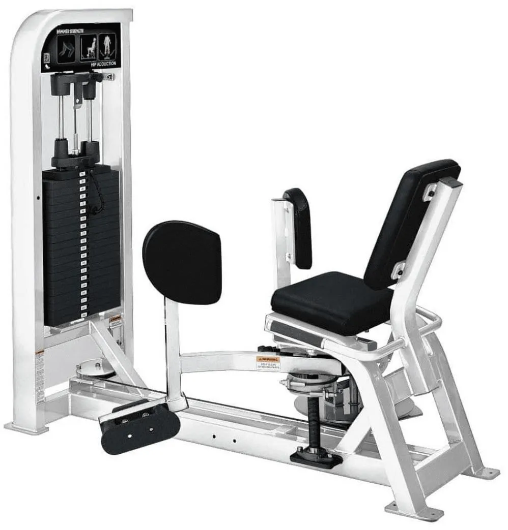 The Hammer Strength Select Hip Adduction is a seated, resistance-based machine designed to isolate and strengthen the inner thigh muscles. It improves pelvic stability and lateral movement power by having users push their knees inward against padded supports..